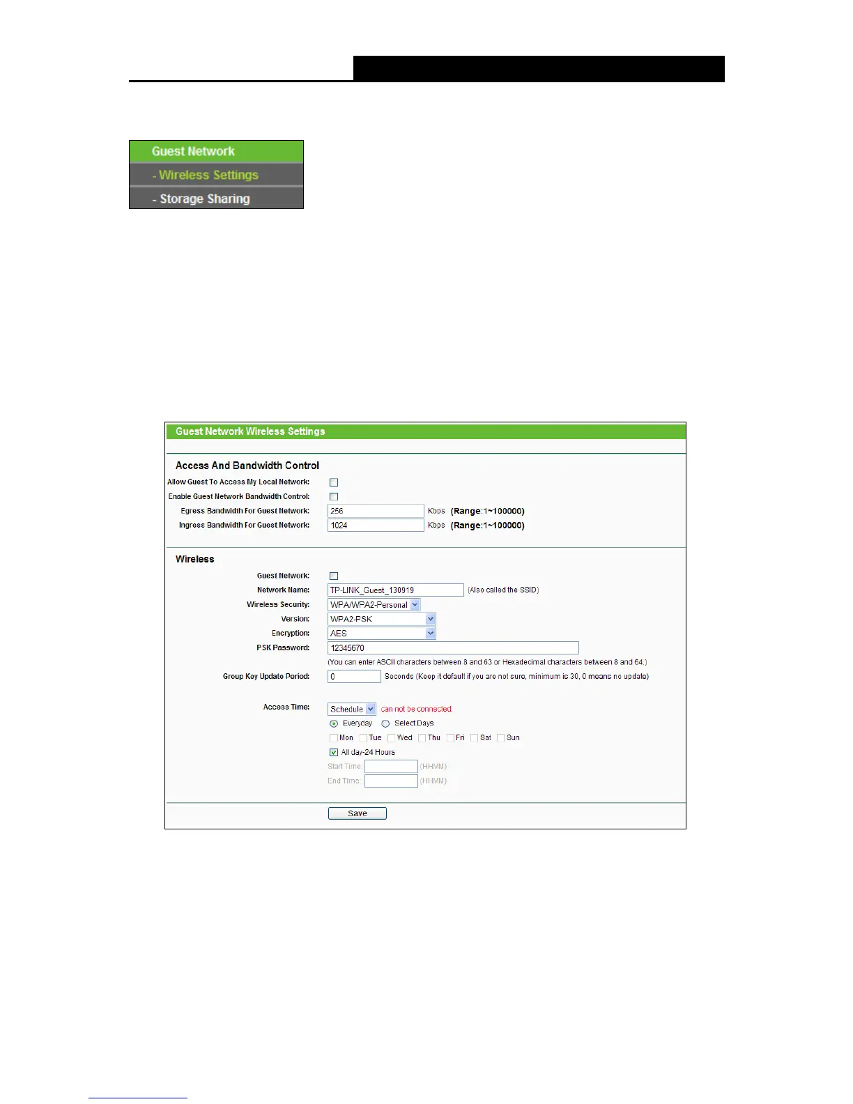 There are two submenus under the Guest Network menu (shown in Figure 4-26): Wireless