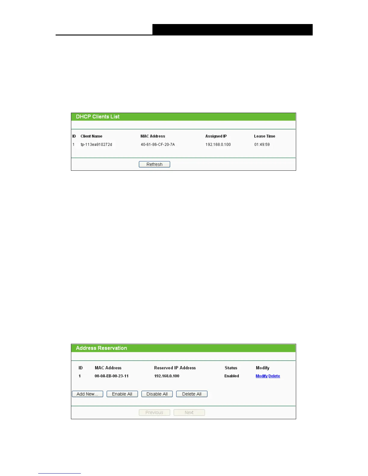 clients via the next screen (shown in Figure 4-33).When you specify a reserved IP address for a