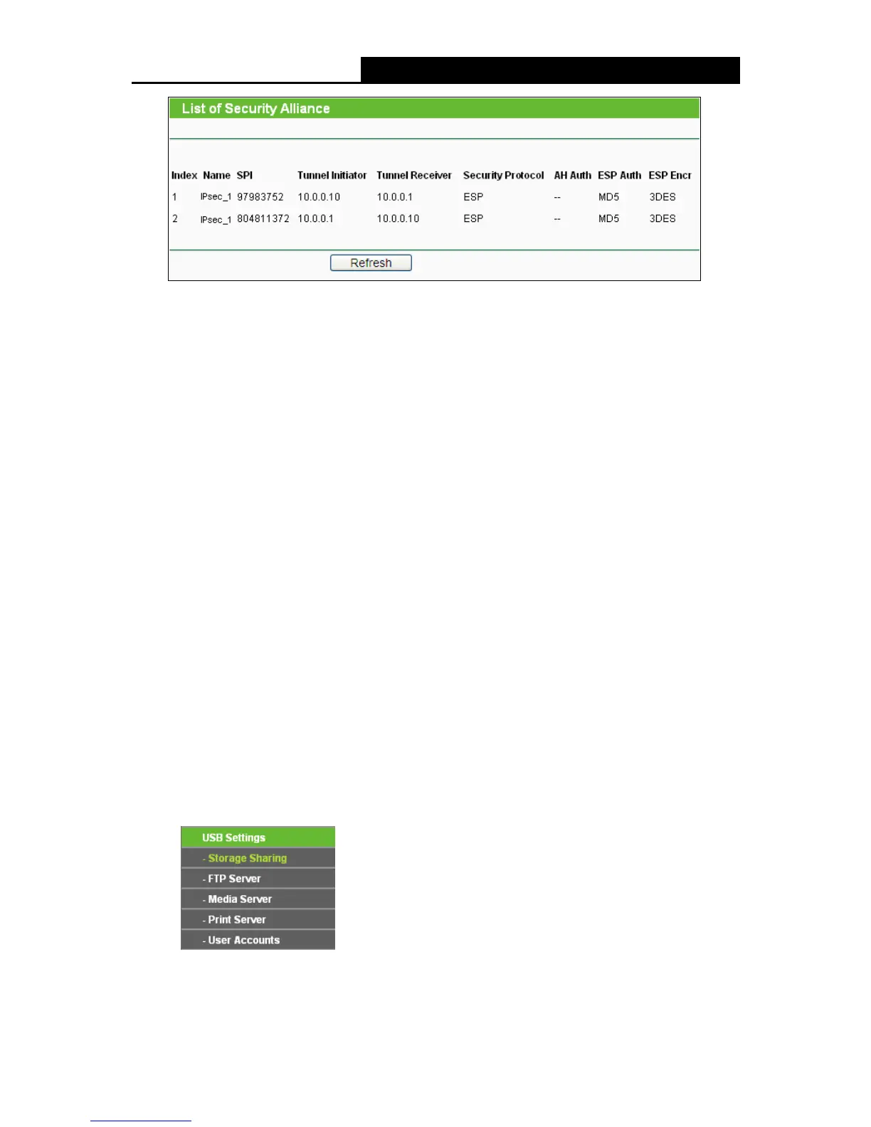 There are four submenus under the USB Settings menu (shown in Figure 4-41), Storage Sharing,