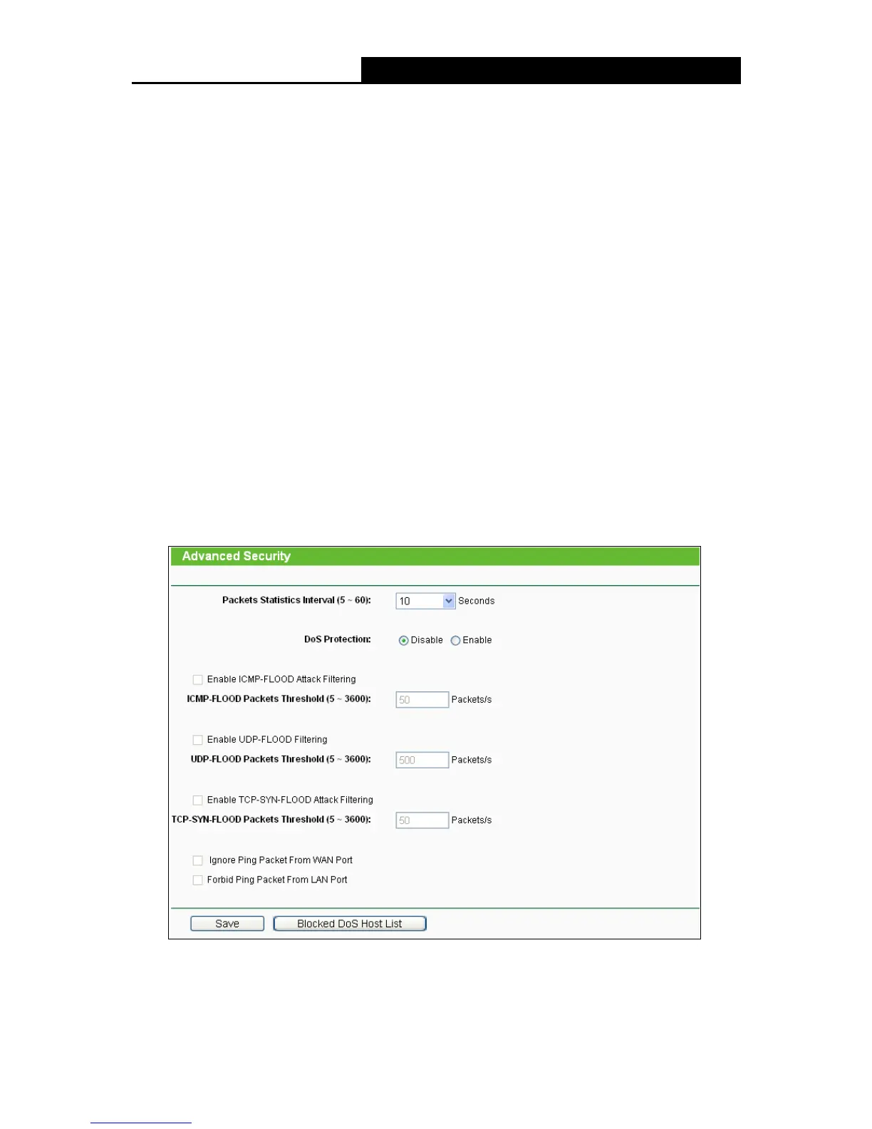 Packets Statistics Interval (5~60) - The default value is 10. Select a value between 5 and