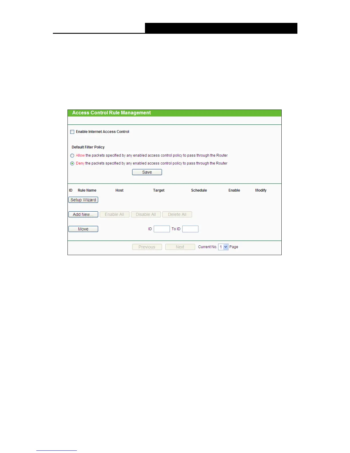 Enable Internet Access Control - Select the check box to enable the Internet Access