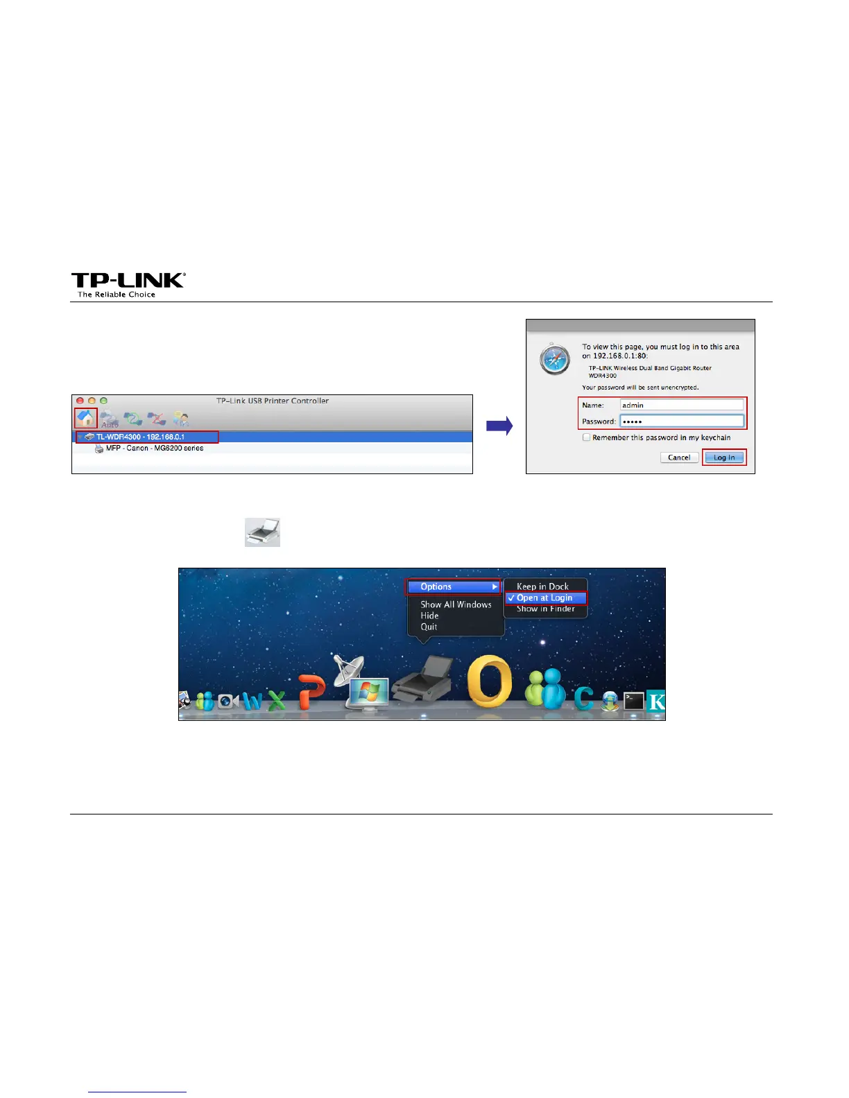 With this setting, the TP-LINK USB Printer Controller will run automatically every time you log on your Mac.