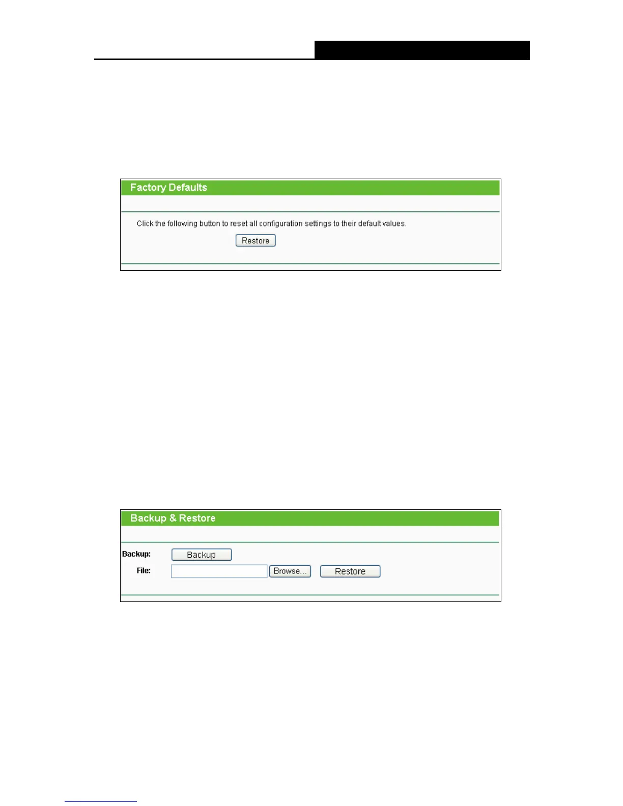 configurations of the Router to factory defaults on the following screen