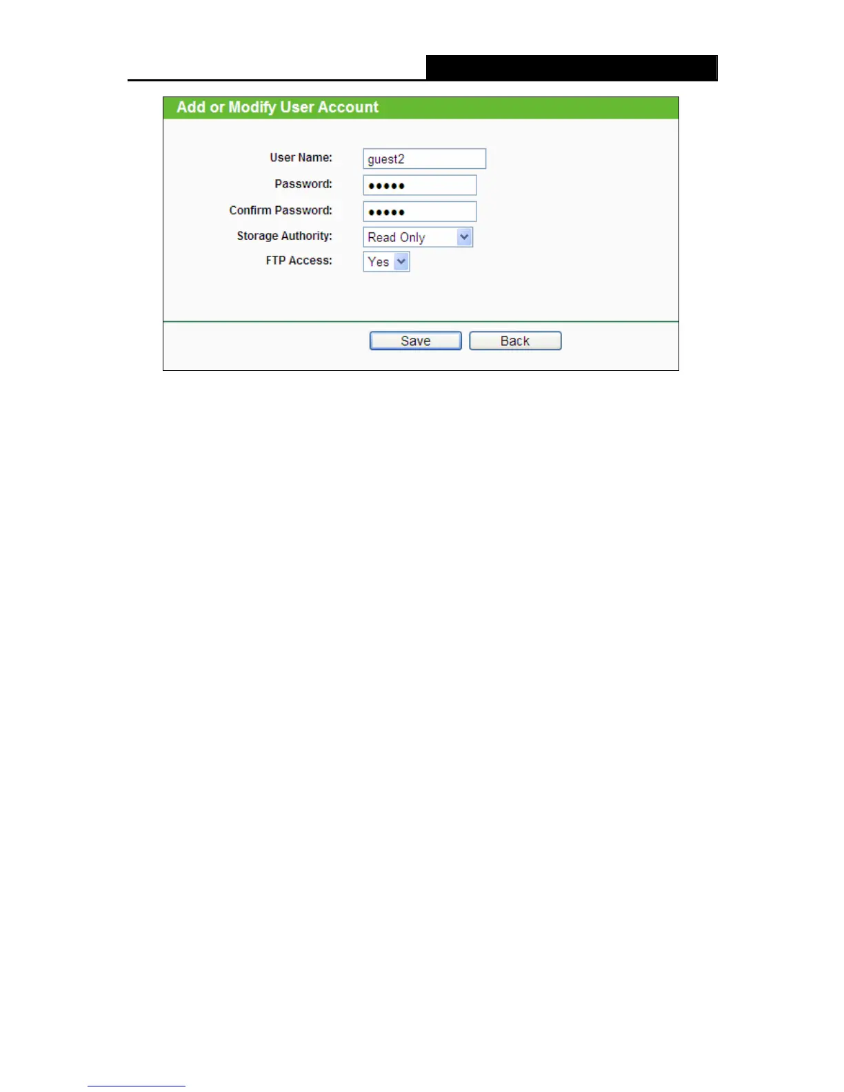 ¾ User Name - Type the user name that you want to give access to the USB drive. The user