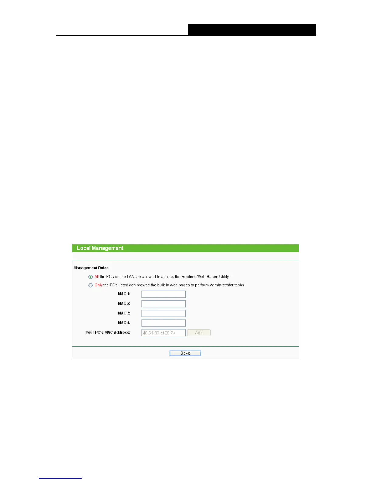 Web-Based Utility” is checked. If you want to allow PCs with specific MAC Addresses to access