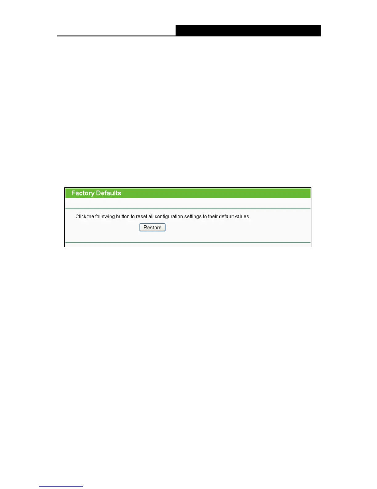 Choose menu “System Tools → Factory Defaults”, and you can restore the configurations of