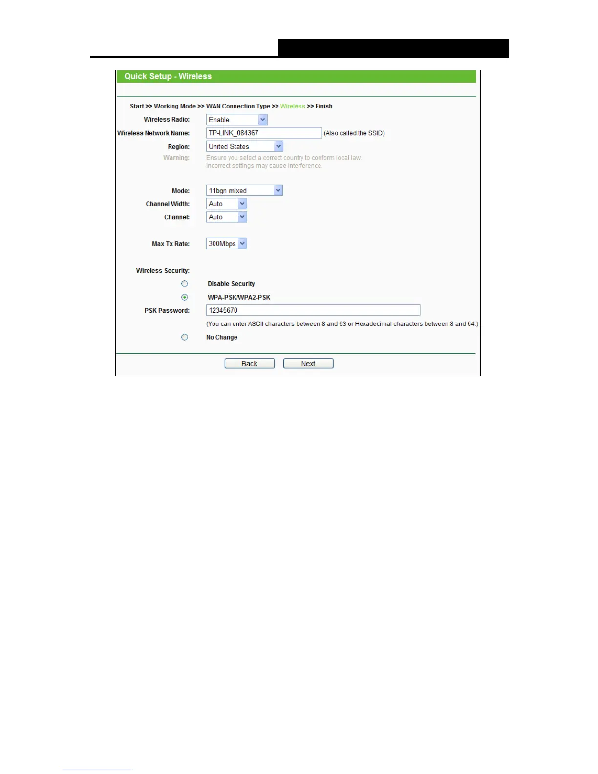 Figure 3-11 Quick Setup – Wireless