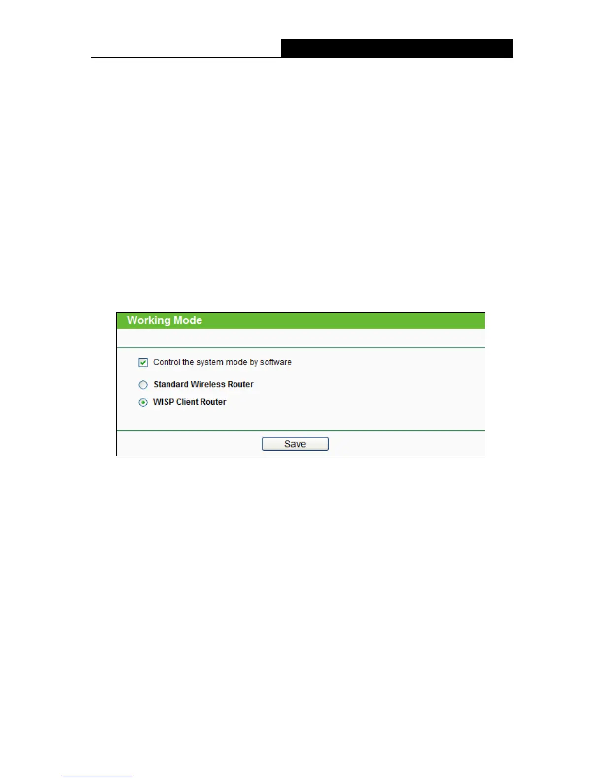 The Router supports two working modes: Standard Wireless Router and WISP Client Router.