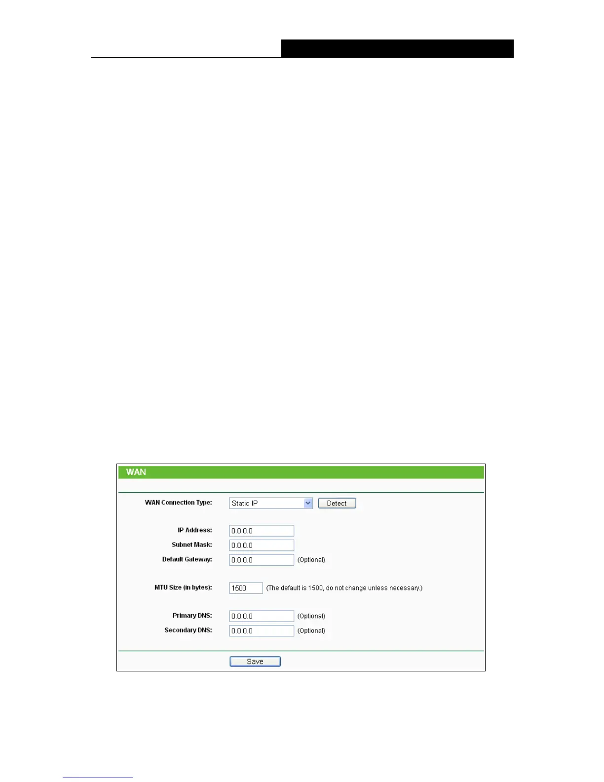 select Static IP. The Static IP settings page will appear, shown in Figure 4-8.
