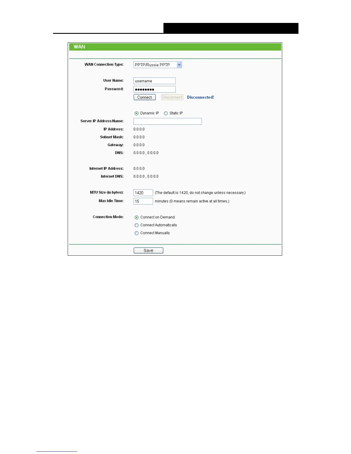 again. If you wish to activate Connect on Demand, check the radio button. If you want your