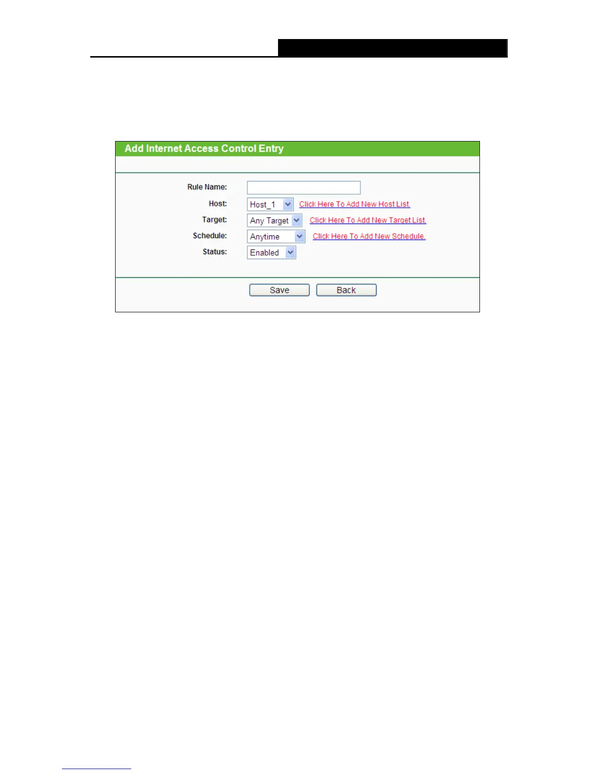 3. Click the submenu Host of Access Control in the left to enter the Host List page. Add a new