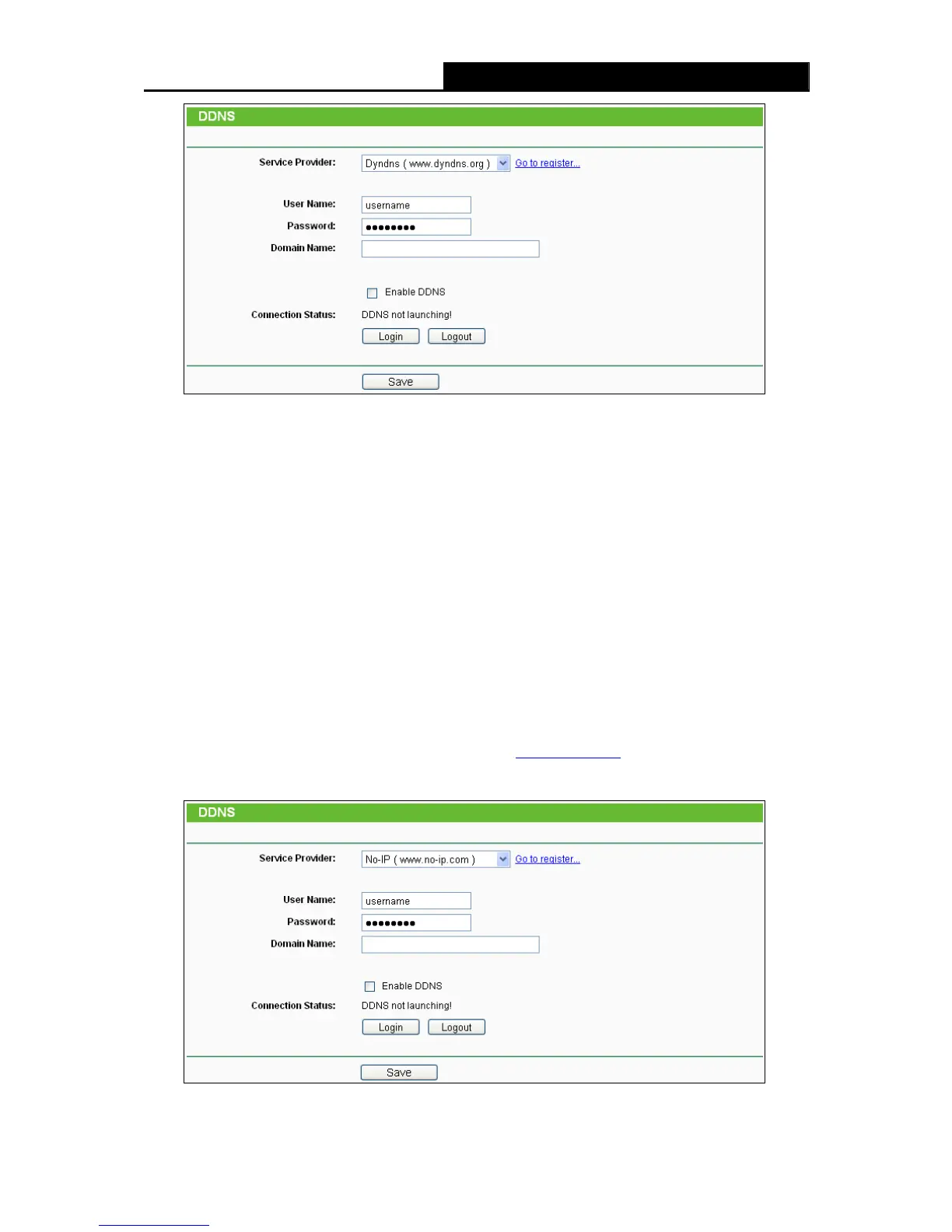 If the dynamic DNS Service Provider you select is www.no-ip.com, the page will appear as