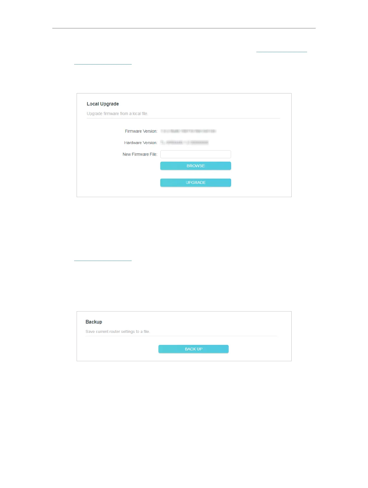 Click BACK UP to save a copy of the current settings in your local computer. A “.bin“ file