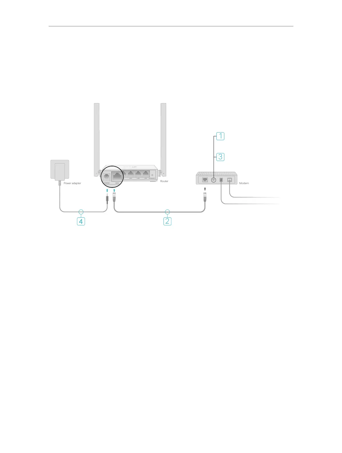 2 ) Connect the modem to the router’s WAN port with an Ethernet cable.