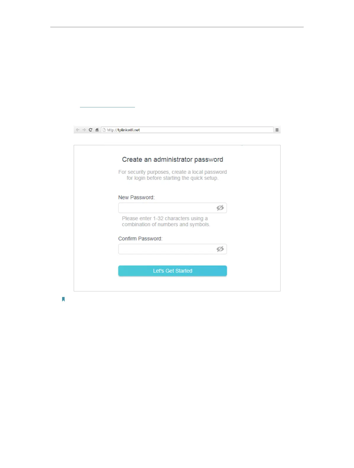 4. Enter http://tplinkwifi.net in the address bar of a web browser. Create a password