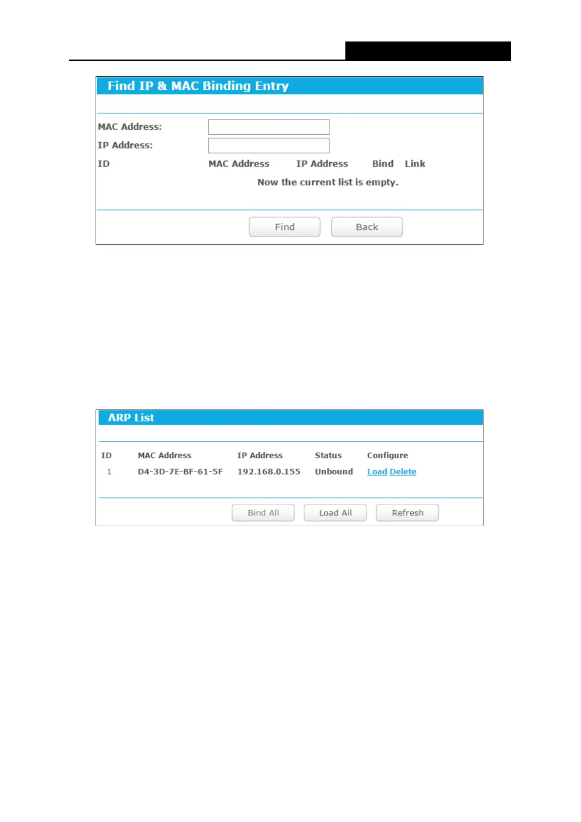 Load - Load the item to the IP & MAC Binding list.