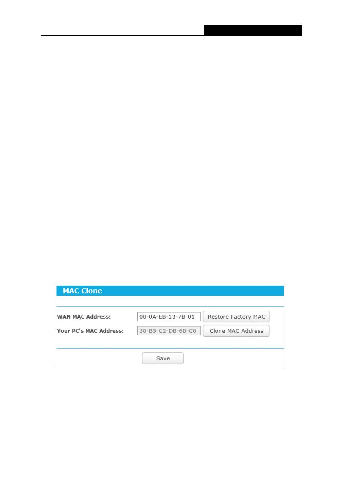 MAC Clone”, and then you can configure the WAN MAC address