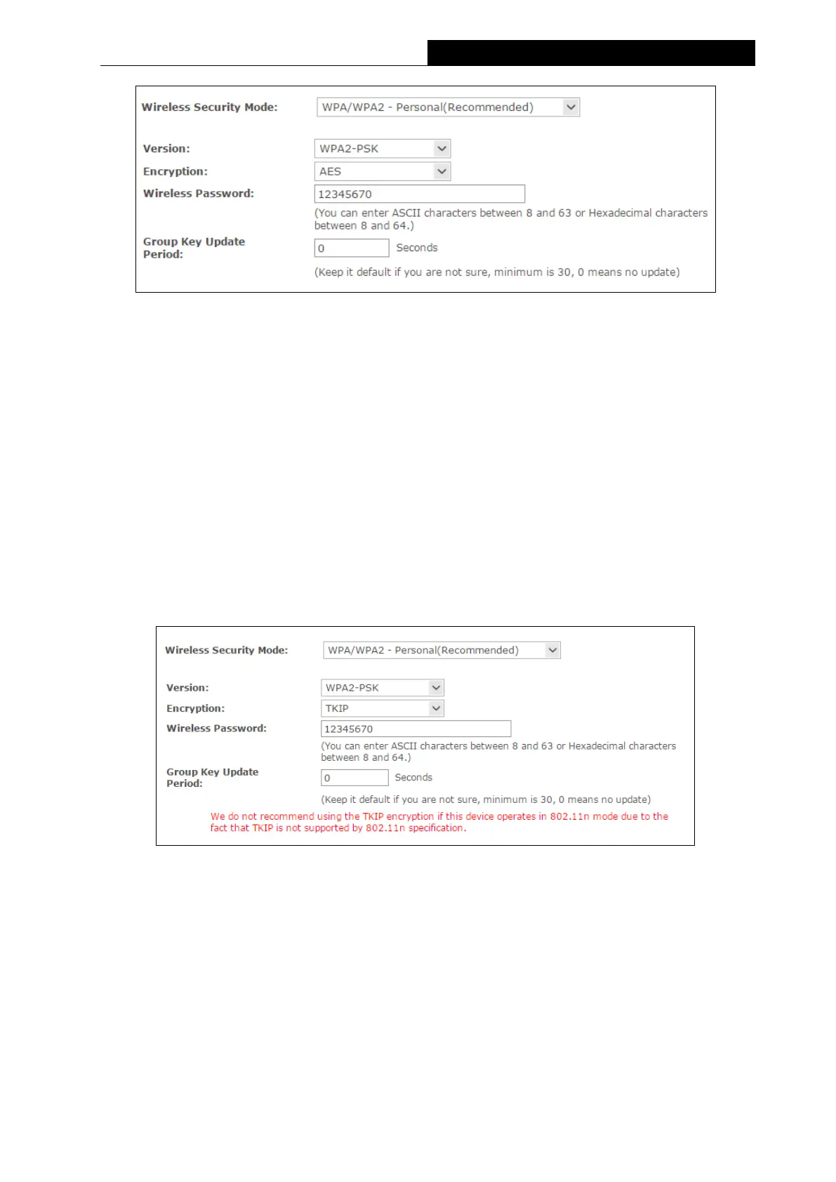 Group Key Update Period - Specify the group key update interval in seconds. The value