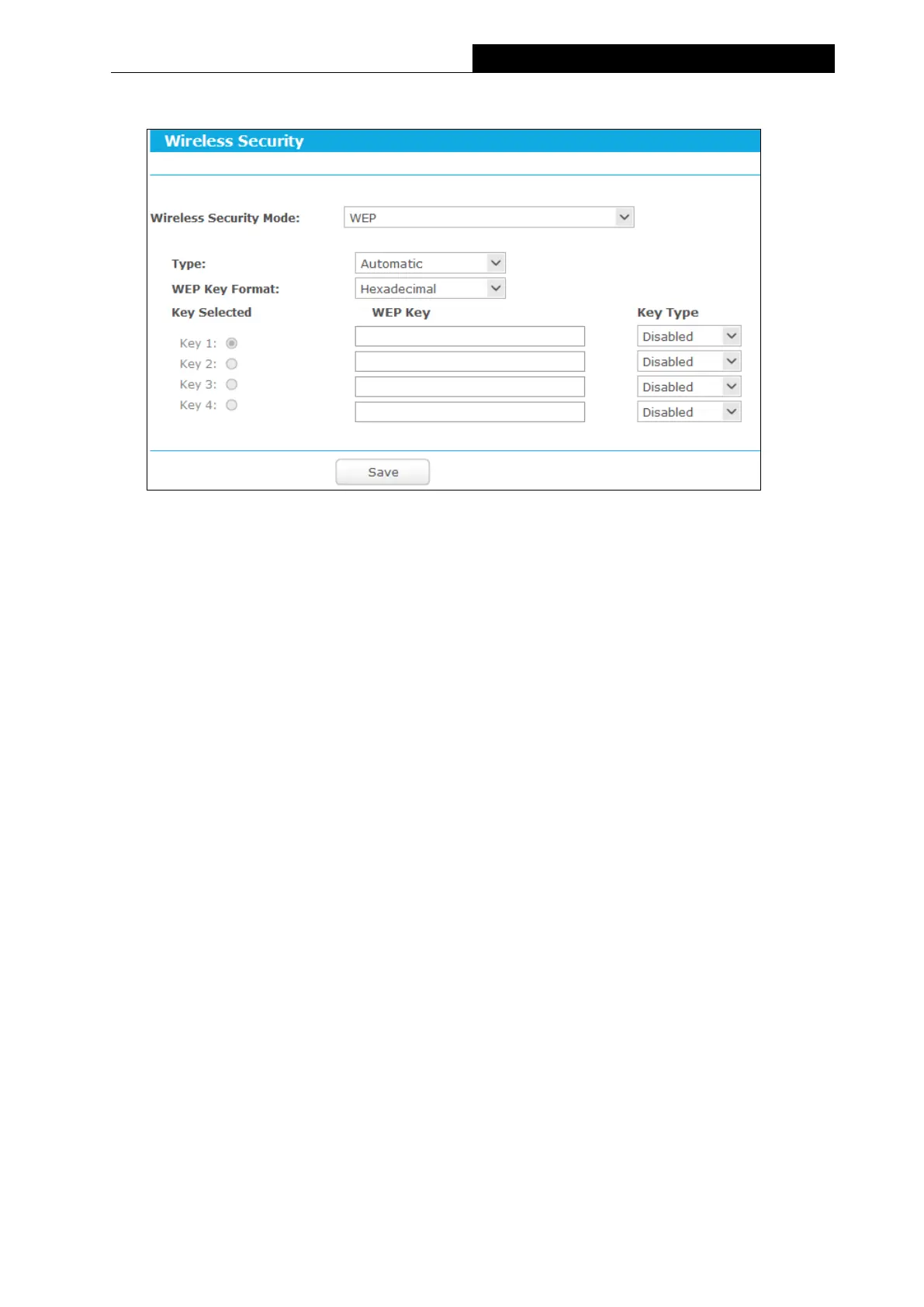 Type - you can choose the type for the WEP security on the pull-down list. The default