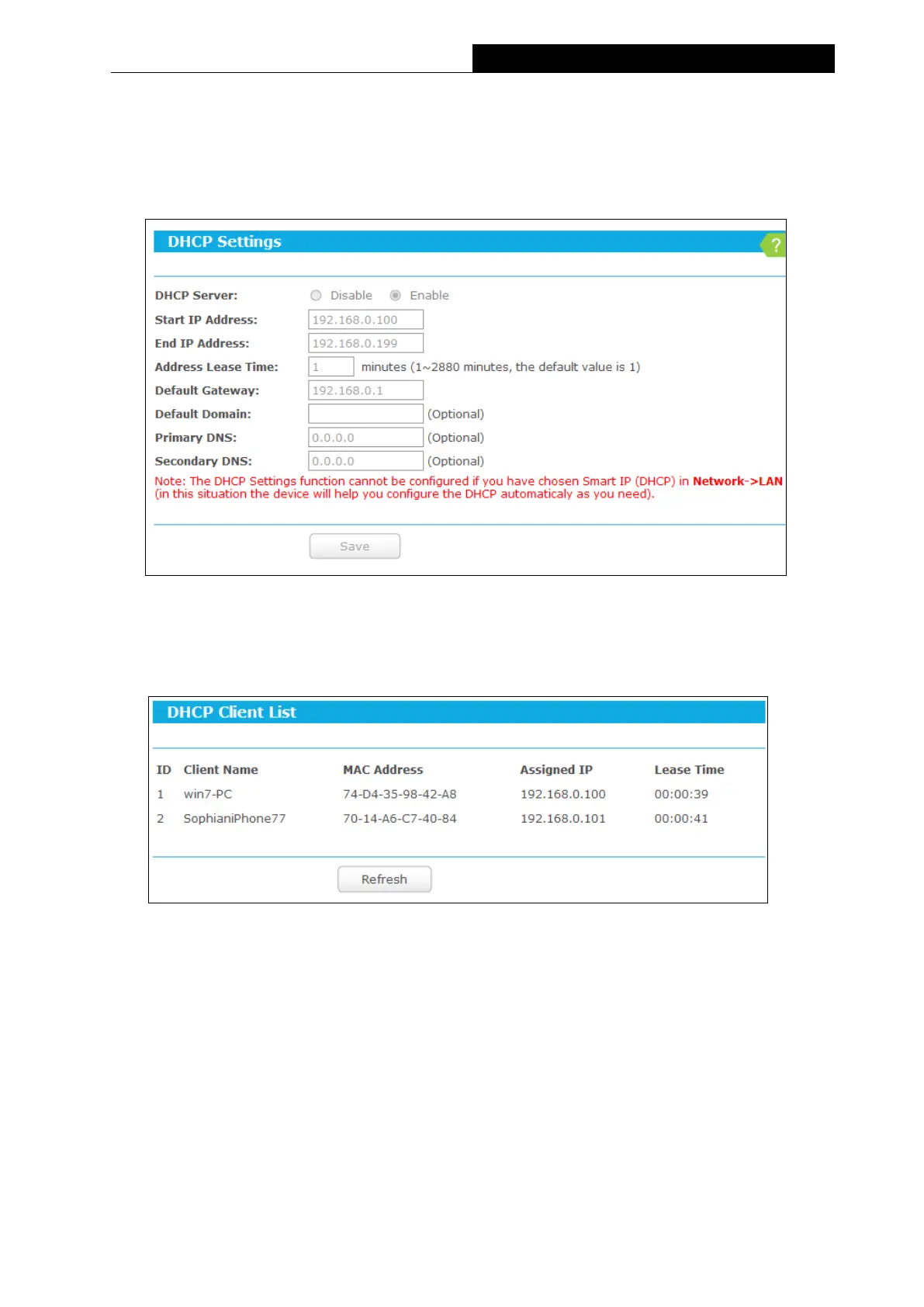2. When you choose the Smart IP (DHCP) mode in Network → LAN, the DHCP Server
