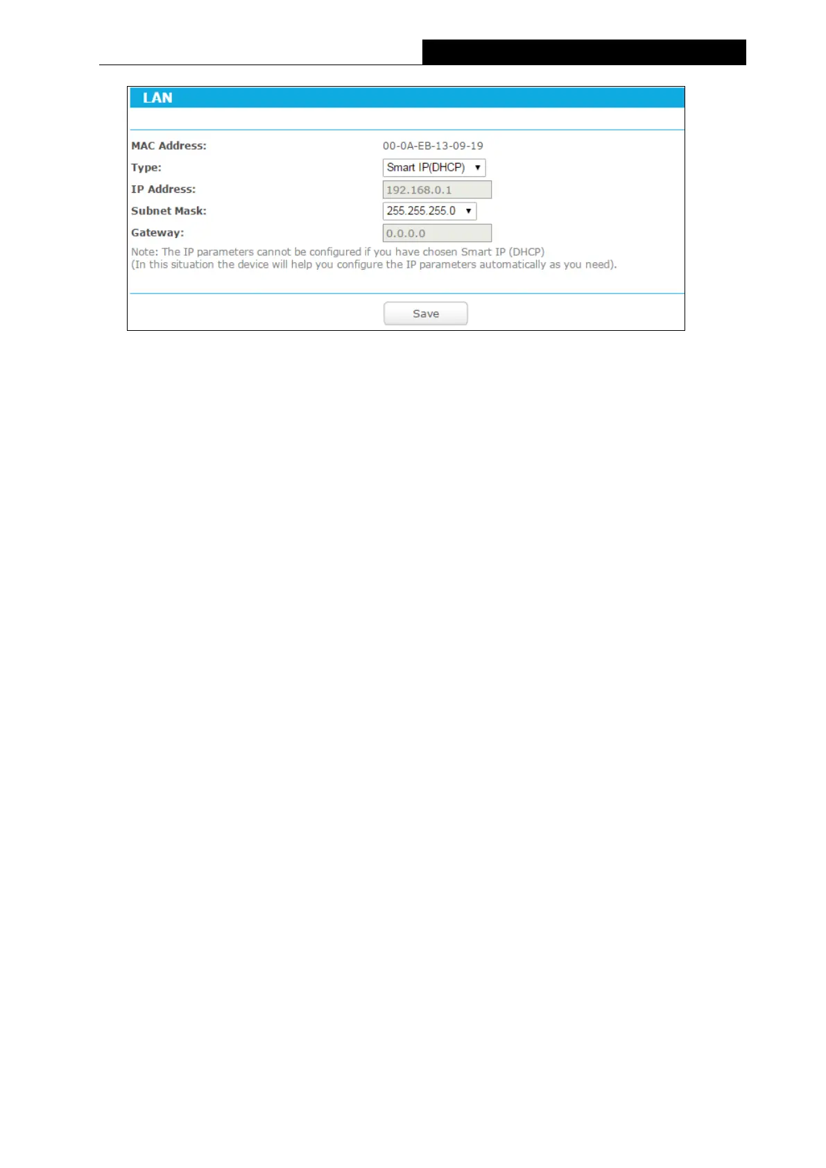 If you select the type of Smart IP, the DHCP server in this device will not startup.