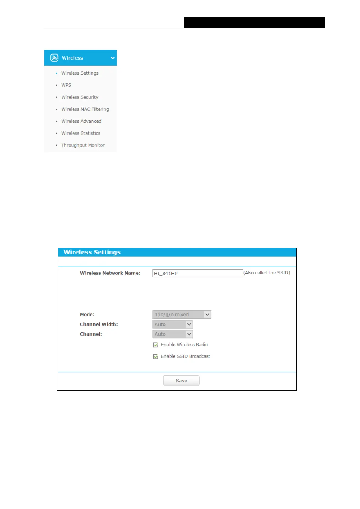 Figure 5-4 Wireless settings