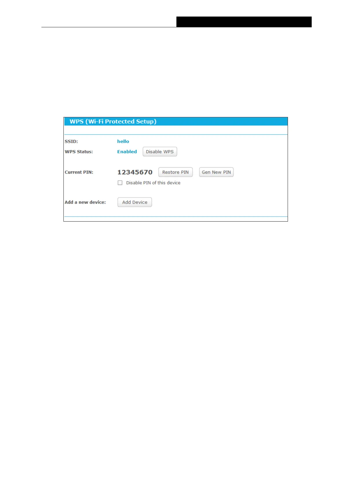 Go to “Setting→Wireless→WPS”, you can see the screen as shown in Figure 3-20. This