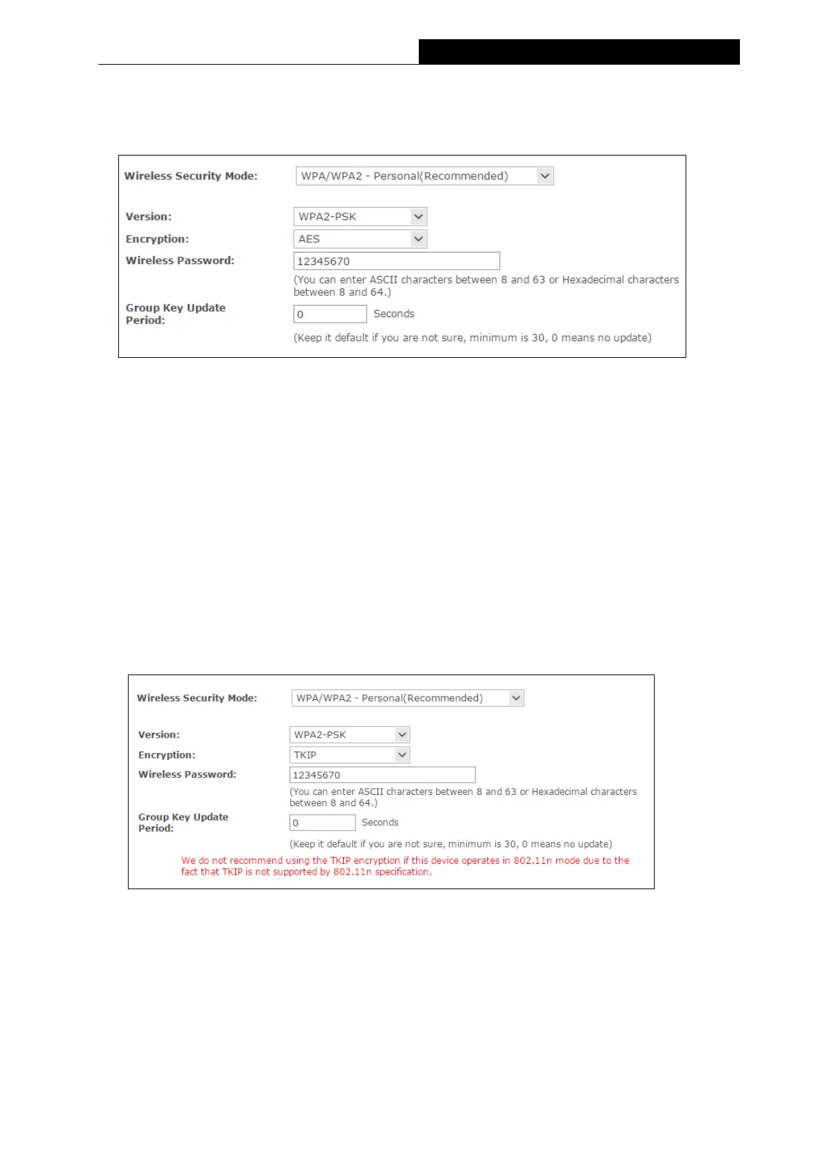 Group Key Update Period - Specify the group key update interval in seconds. The value
