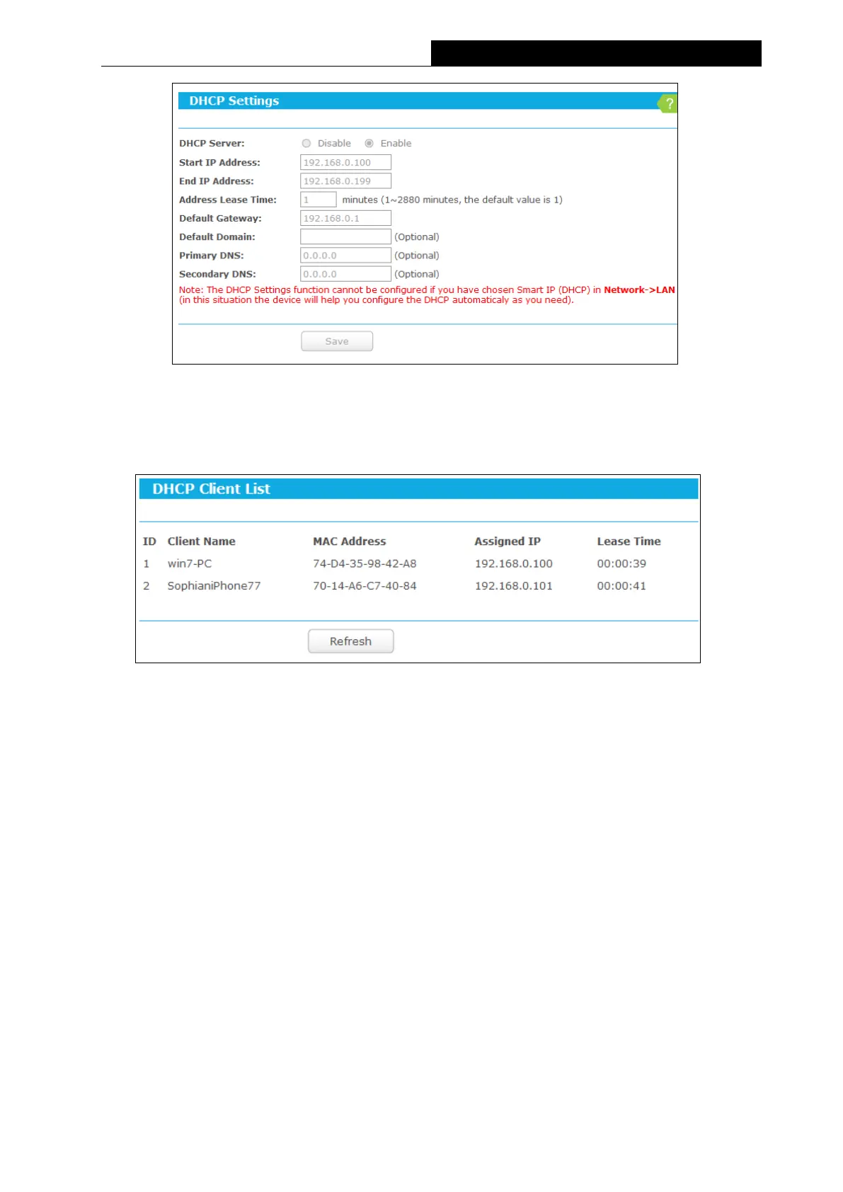 Lease Time - The time of the DHCP client leased. After the dynamic IP address has