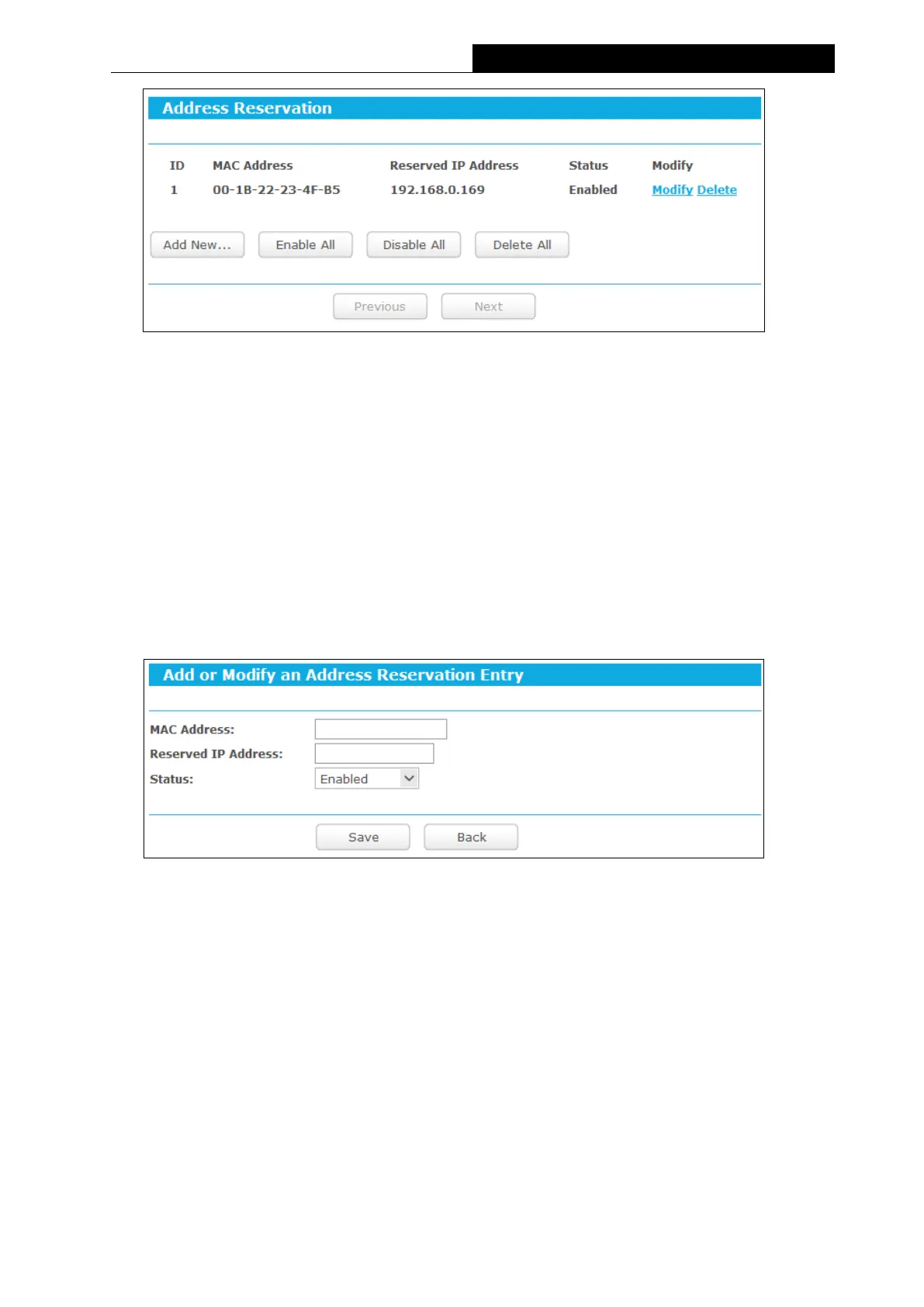 Figure 5-20 Add or Modify an Address Reservation Entry