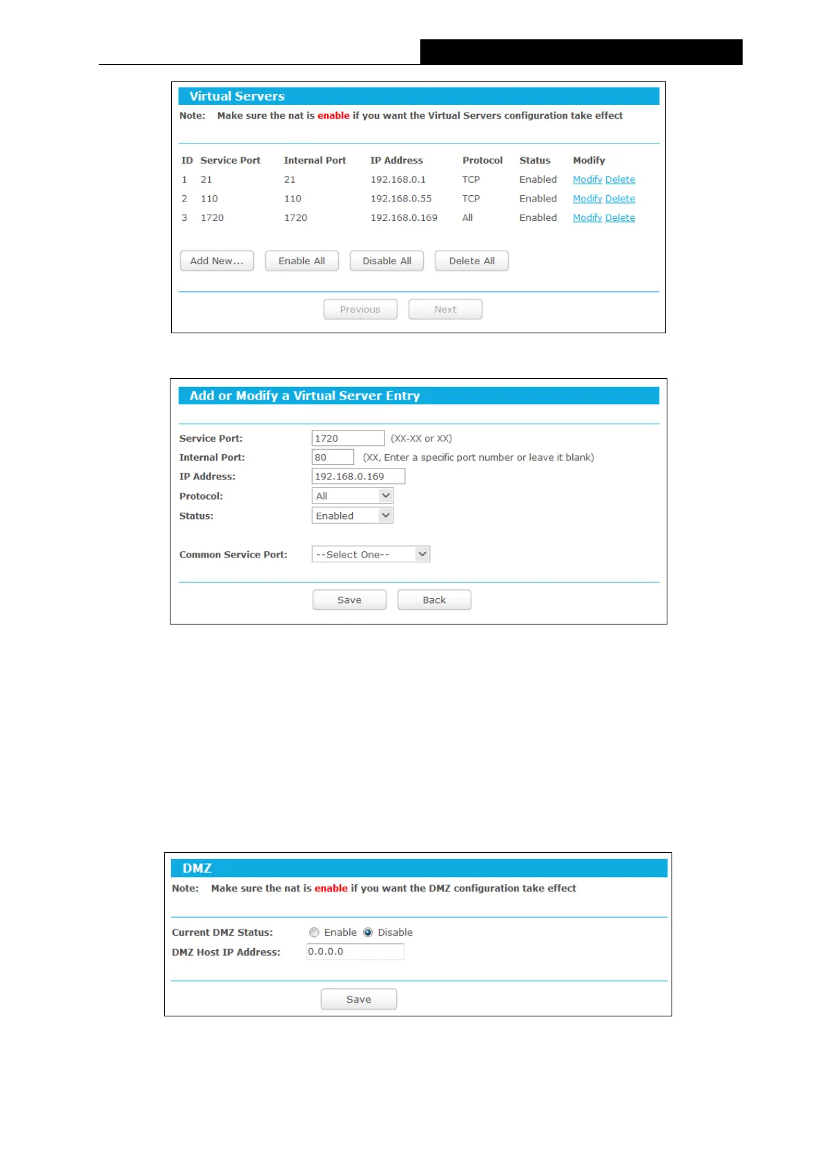 “DMZ Host IP Address” field, using 192.168.0.169 as an example, remember to click
