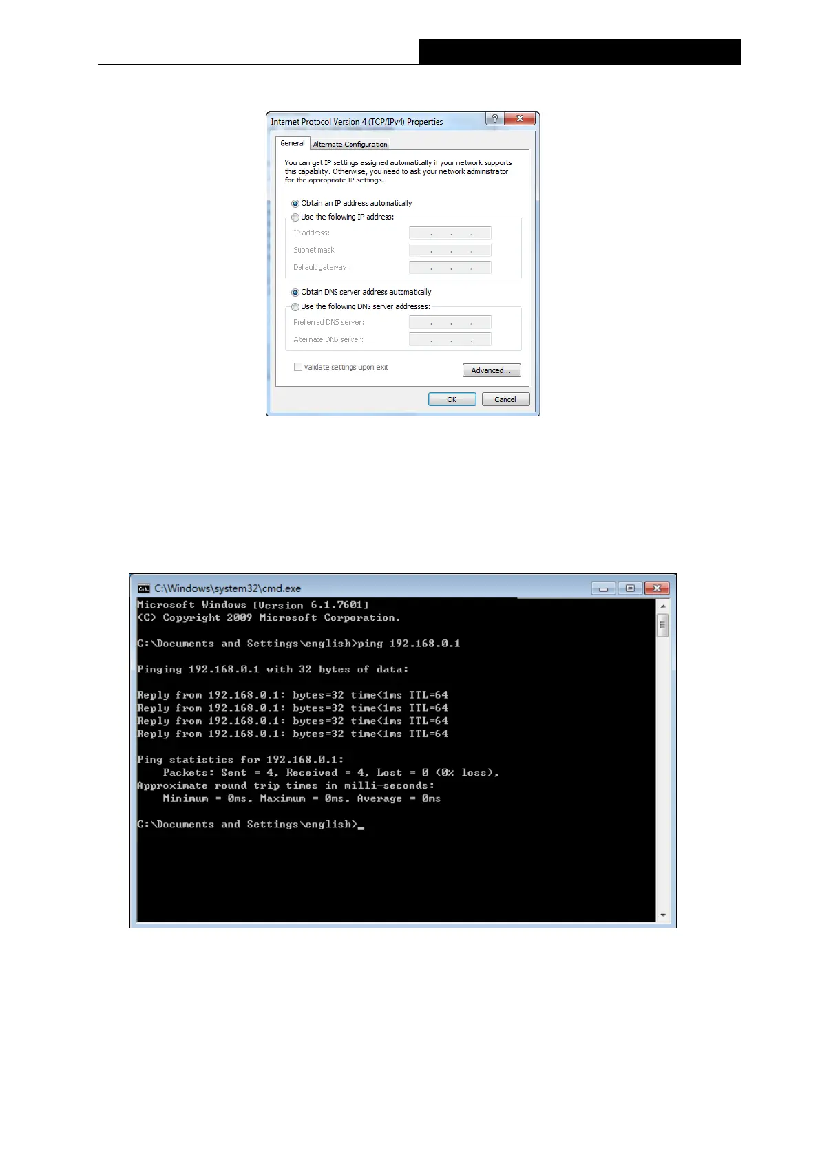 Open a command prompt, and type ping 192.168.0.1, and then press Enter.
