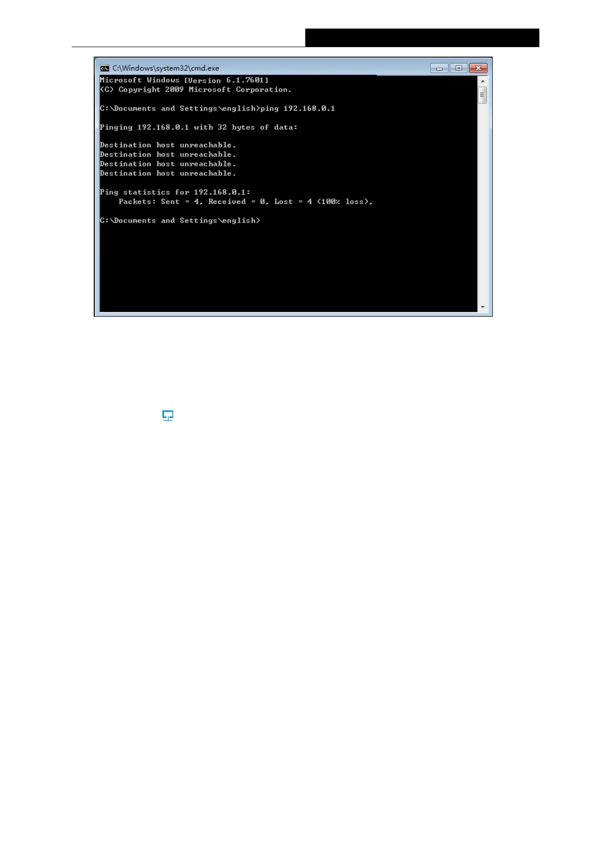 Figure B-5 Failure result of Ping command