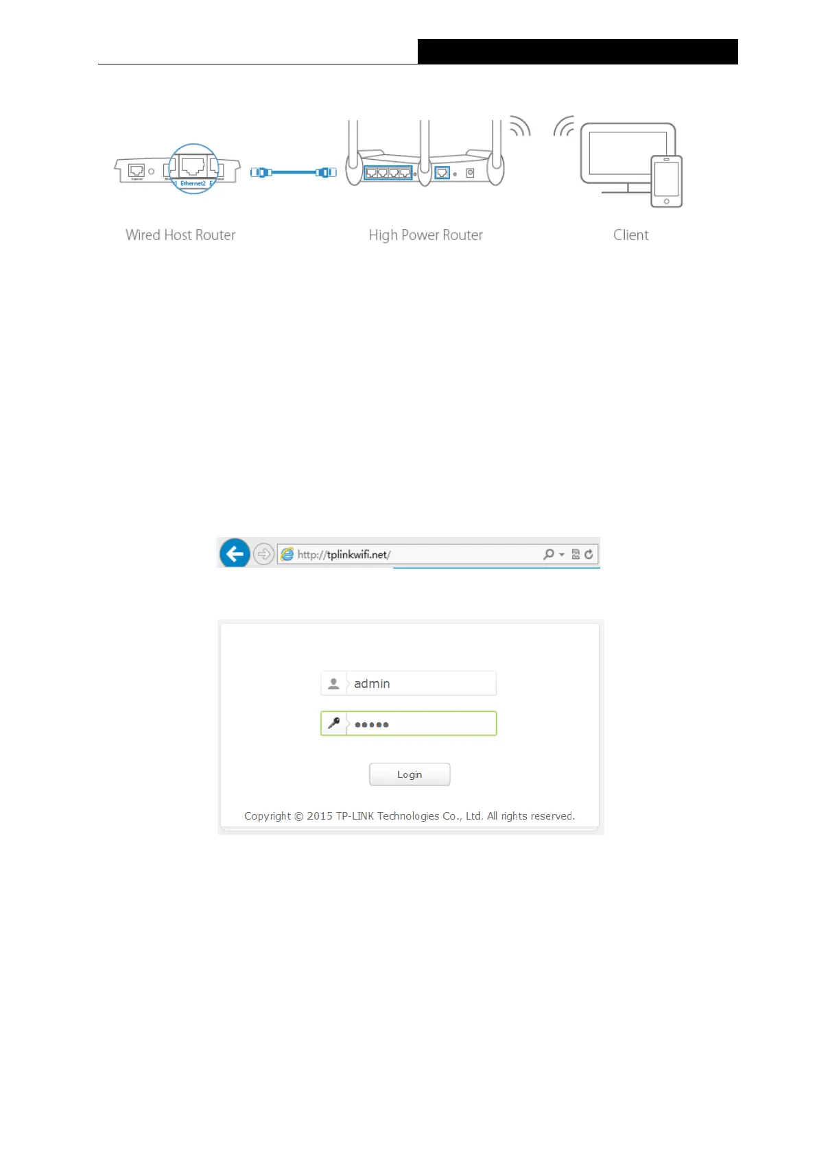 2. Connect the router to your wired host router’s Ethernet port via an Ethernet cable as shown