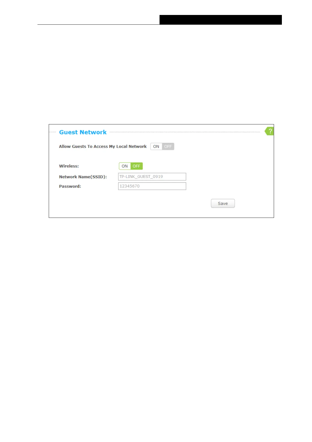 Choosing menu “Basic→Guest Network”, you can configure the basic setting for guest