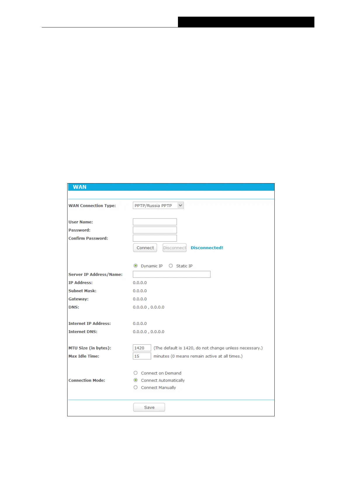 6. If your ISP provides PPTP connection, please select PPTP/Russia PPTP option. And you