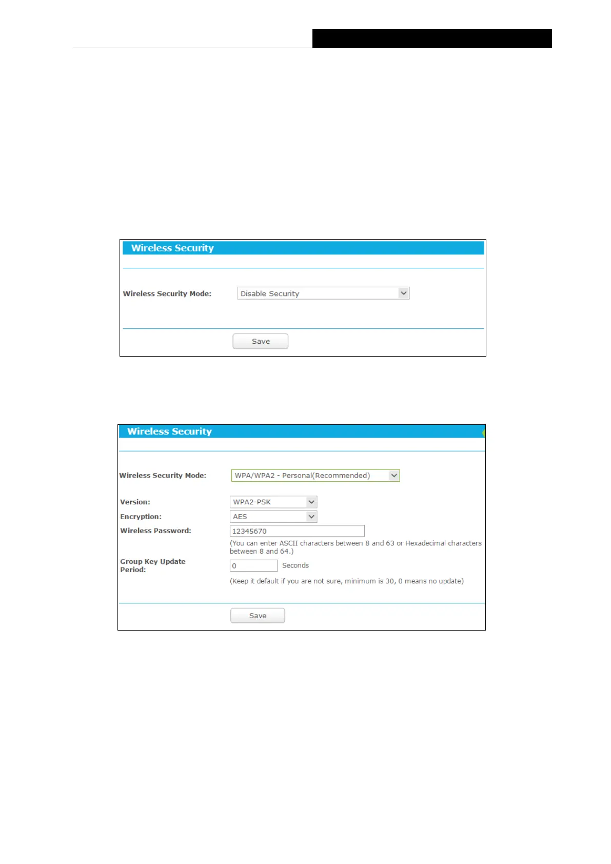 Disable Security - The wireless security function can be enabled or disabled. If disabled,
