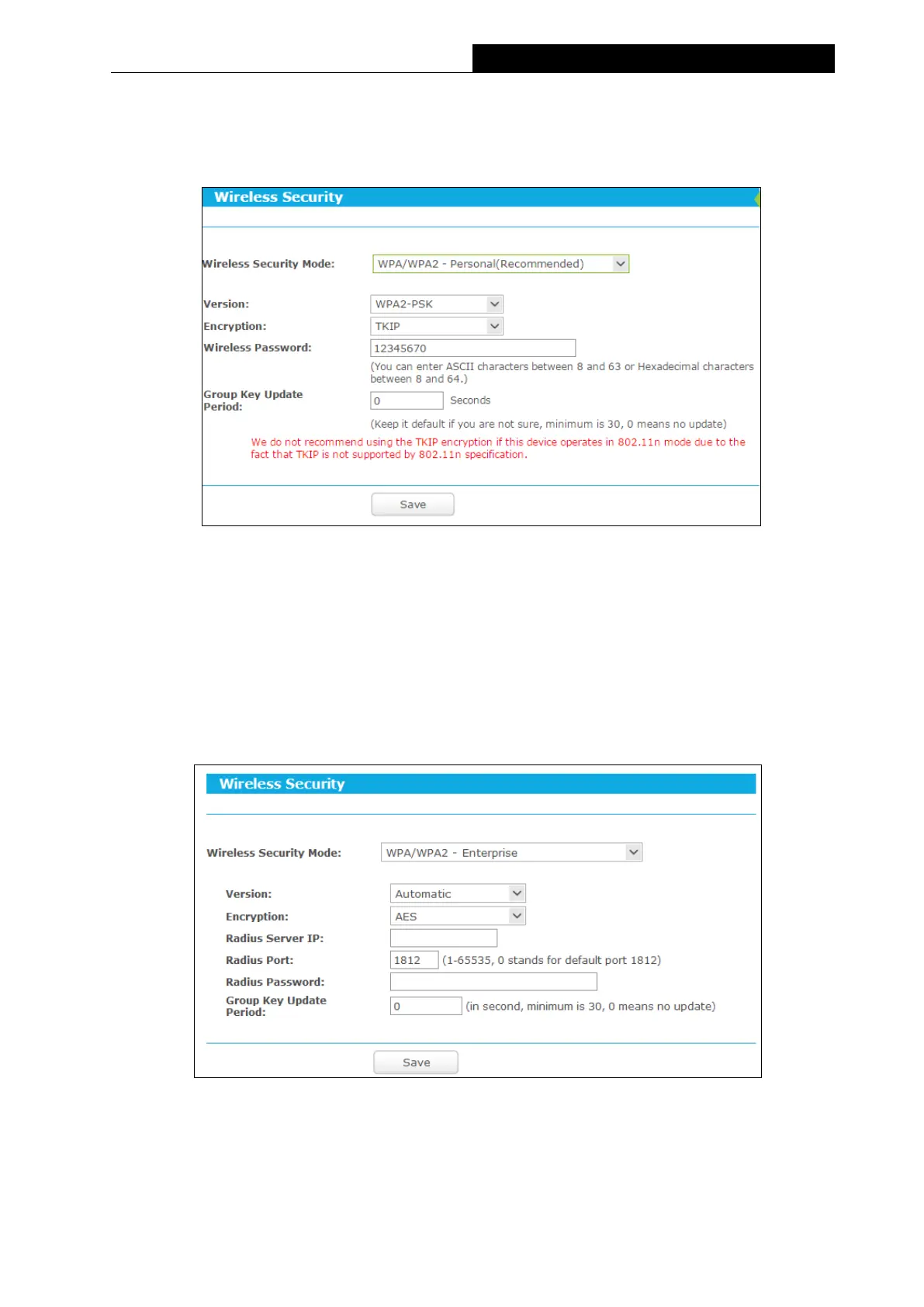 WPA/WPA2- Enterprise - It’s based on Radius Server. If you choose WPA/WPA2 -