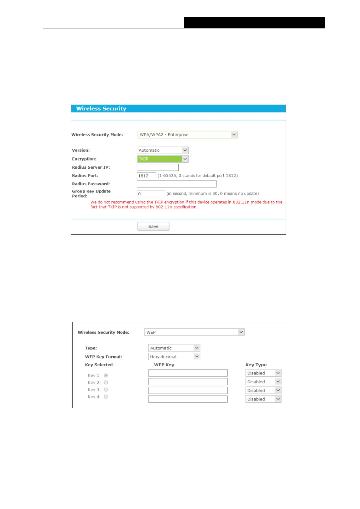 If you check the WPA/WPA2-Enterprise radio button and choose TKIP encryption,
