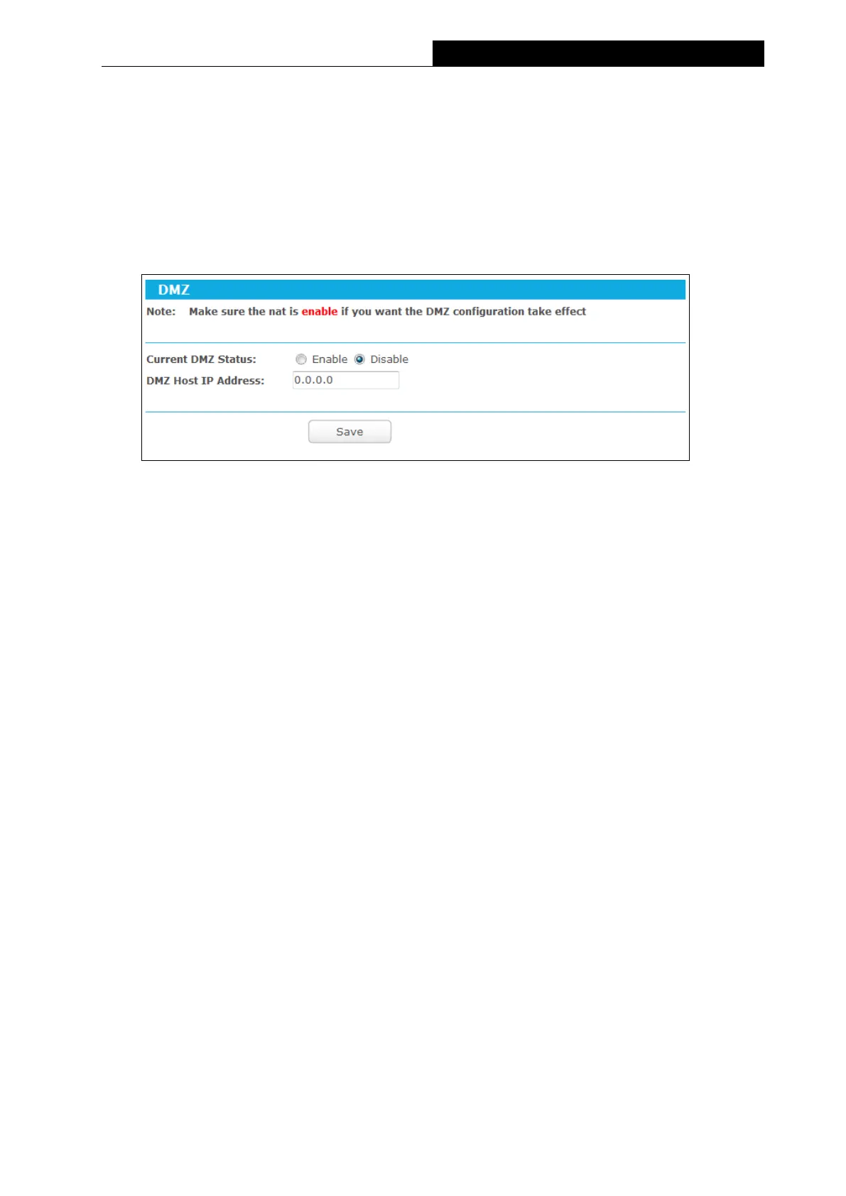 Go to “Advanced→Forwarding→DMZ”, and then you can view and configure DMZ host in this