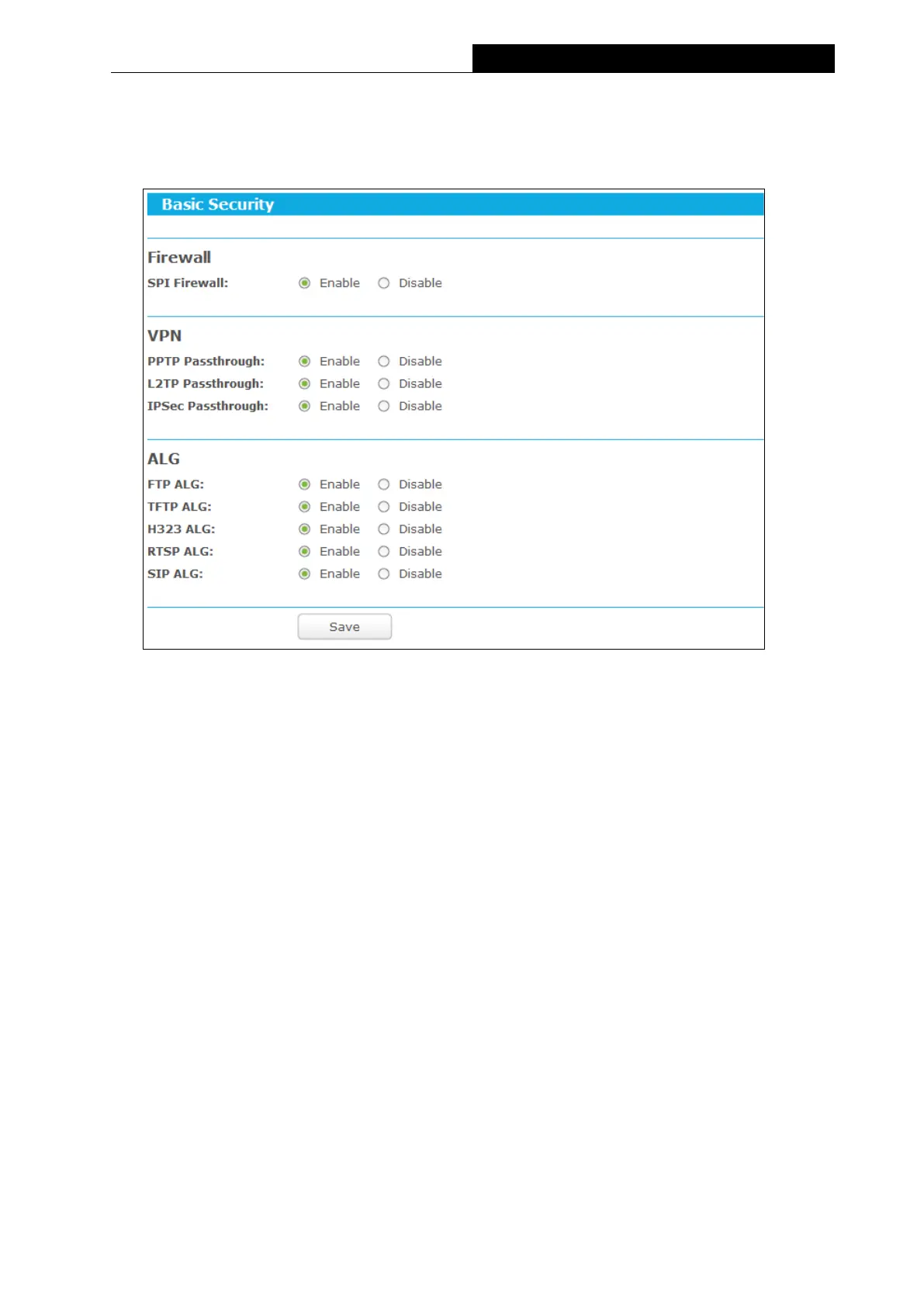 Go to “Advanced→Security→Basic Security”, and then you can configure the basic security