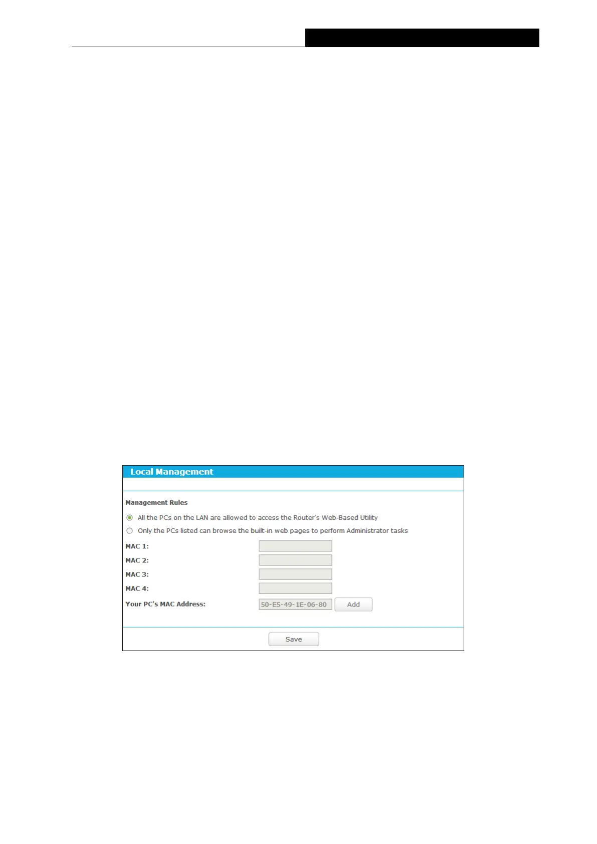 the radio button “Only the PCs listed can browse the built-in web pages to perform