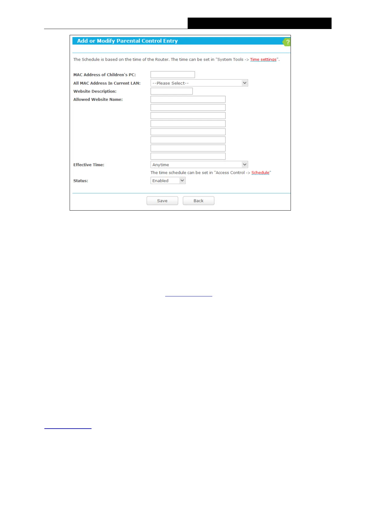 Figure 3-46 Add or Modify Parental Controlss Entry