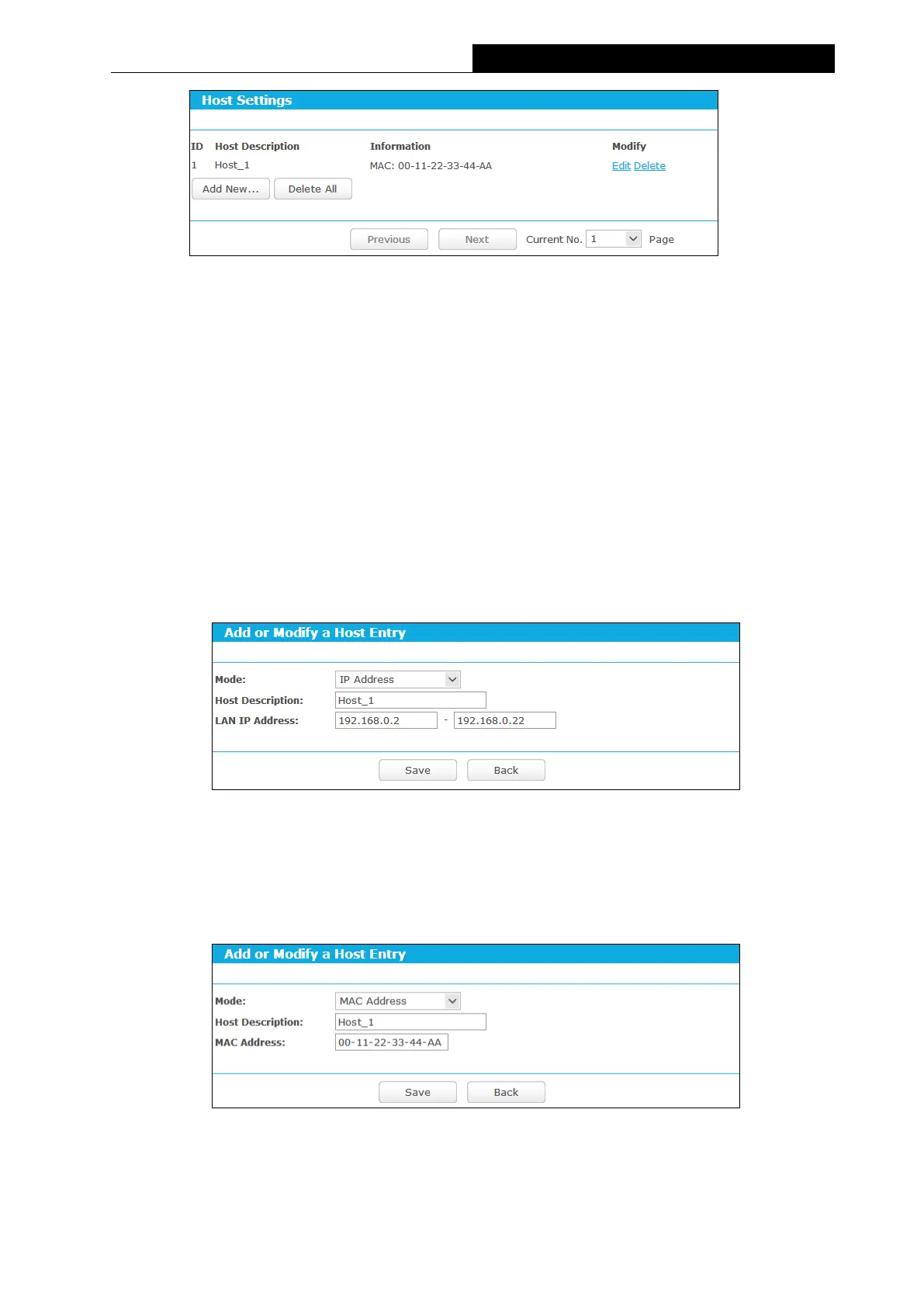 1) In Host Description field, create a unique description for the host, e.g. Host_1.