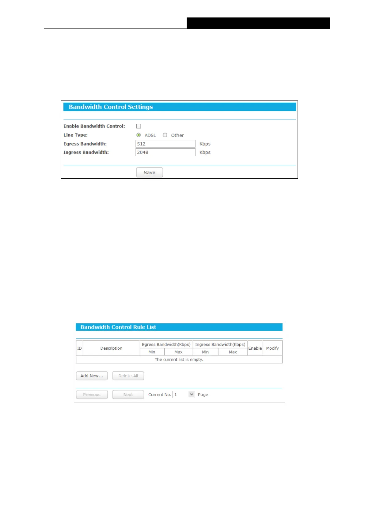 Figure 3-65 Bandwidth Control Settings