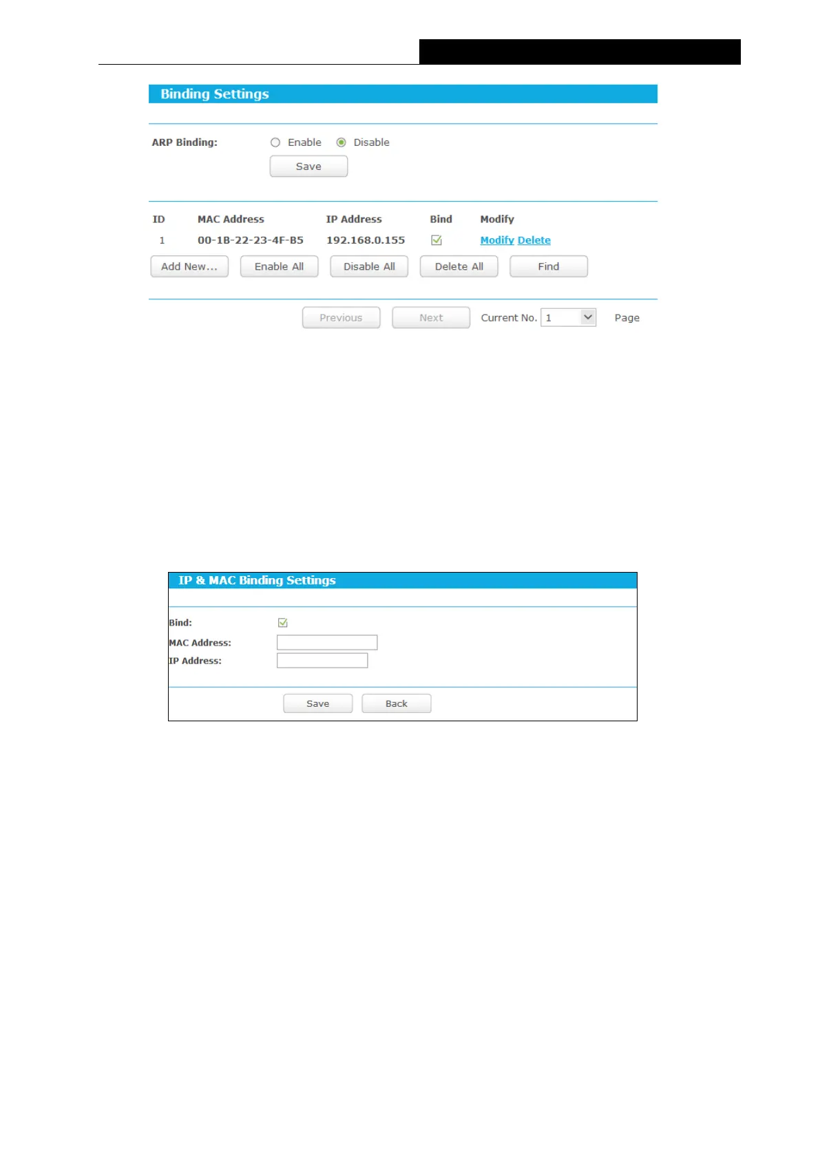 When you want to add or modify an IP & MAC Binding entry, you can click the Add New…