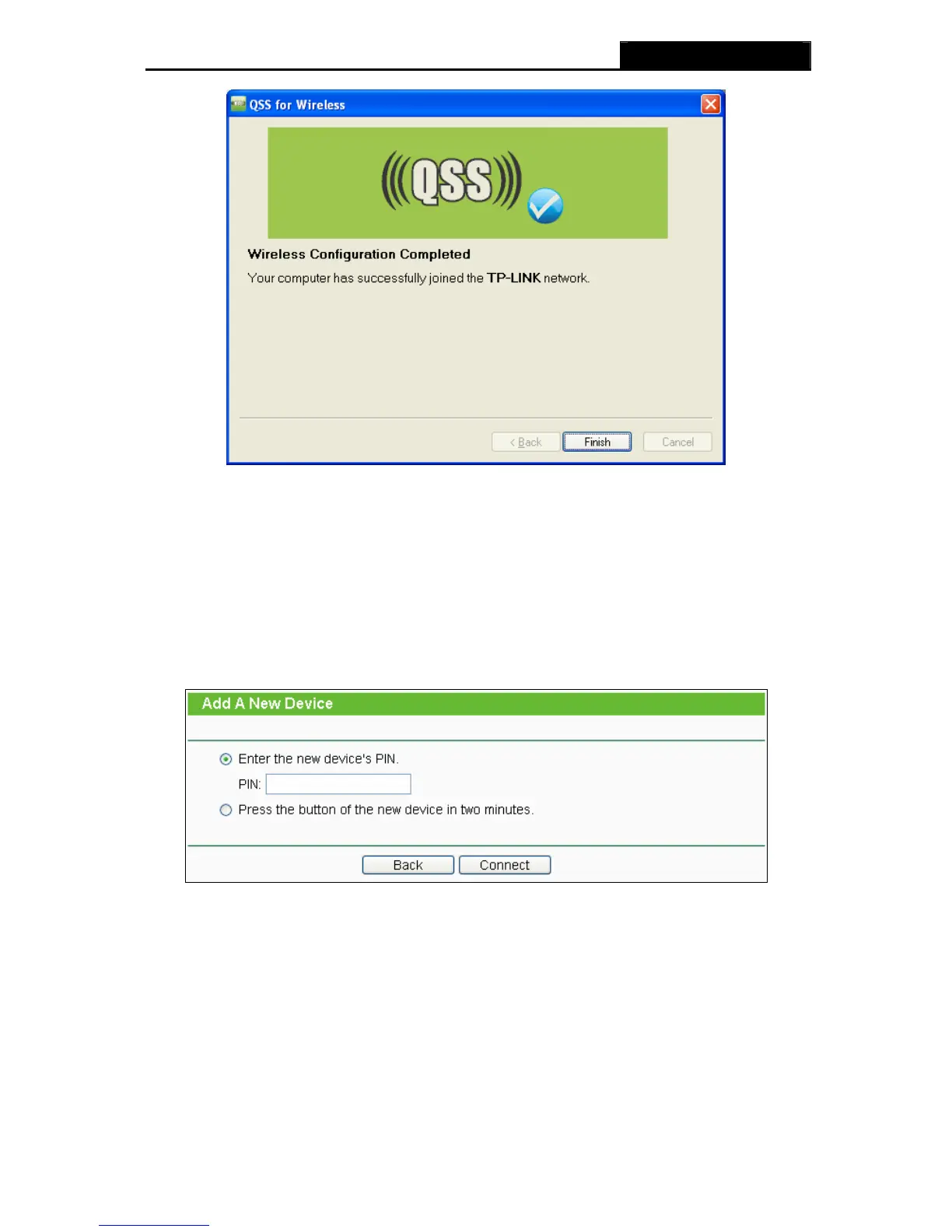 The PIN code of the adapter is always displayed on the QSS configuration screen.