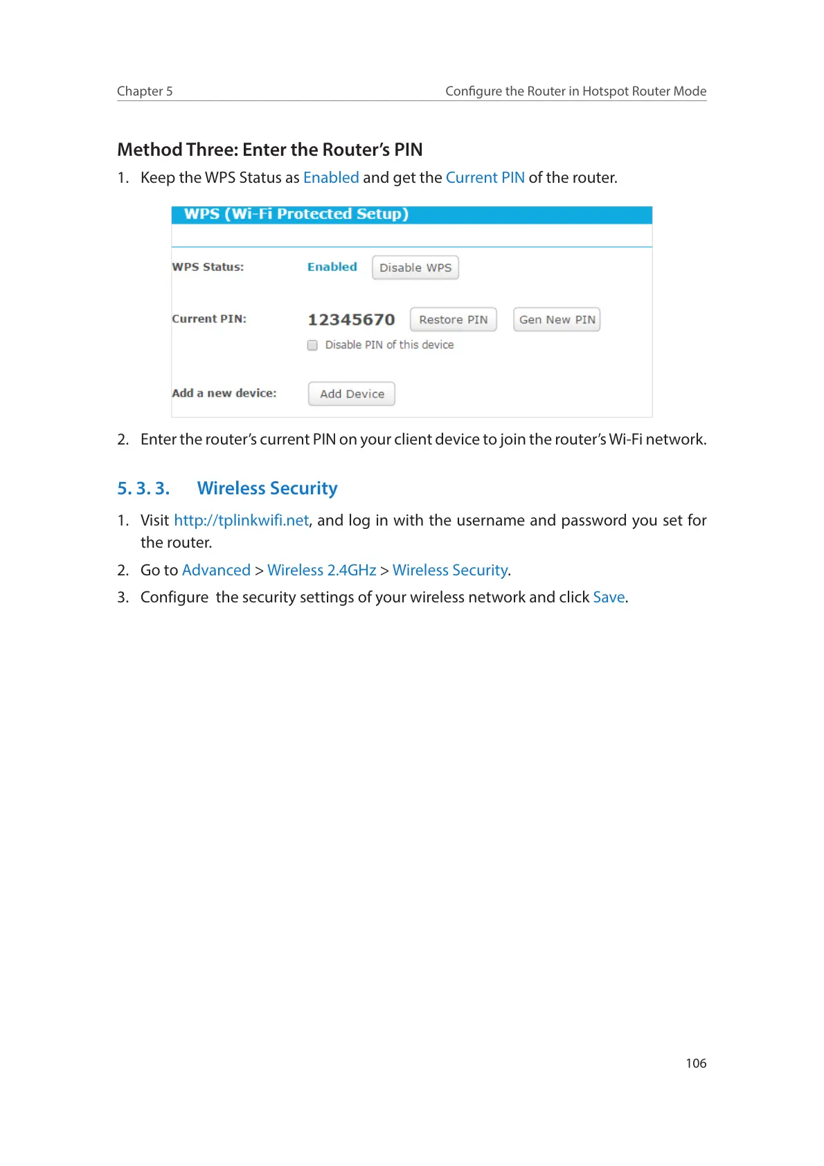 1. Keep the WPS Status as Enabled and get the Current PIN of the router.