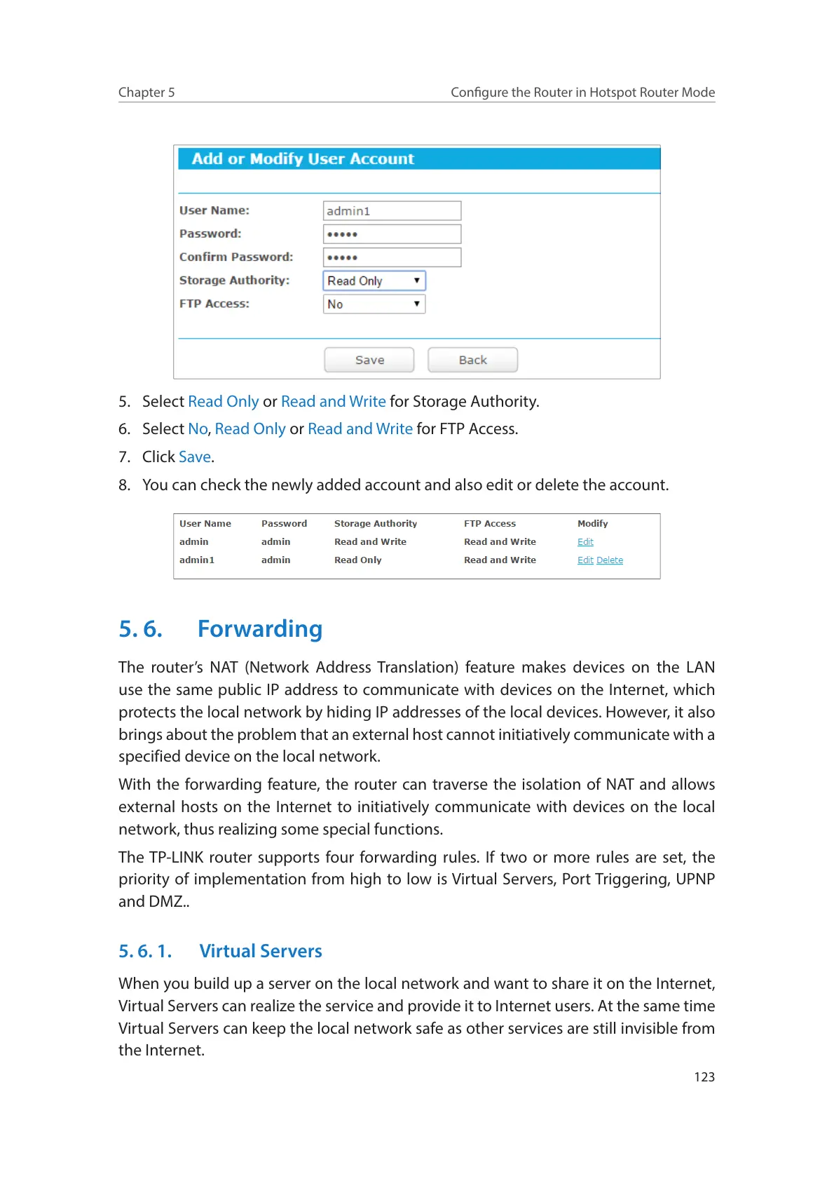 The TP-LINK router supports four forwarding rules. If two or more rules are set, the