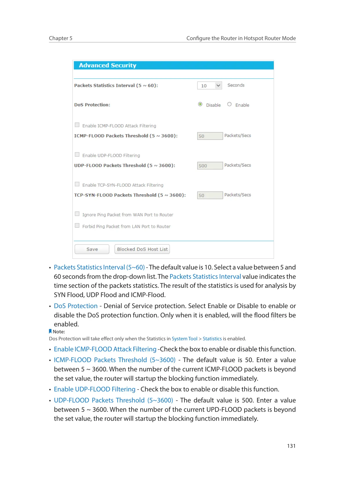 • Packets Statistics Interval (5~60) - The default value is 10. Select a value between 5 and